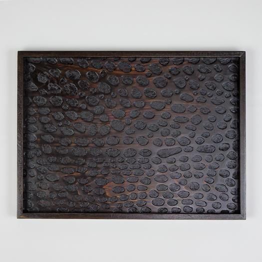 工房しょうぶで活動するメンバーが、ノミで模様を付けたお盆になります。
