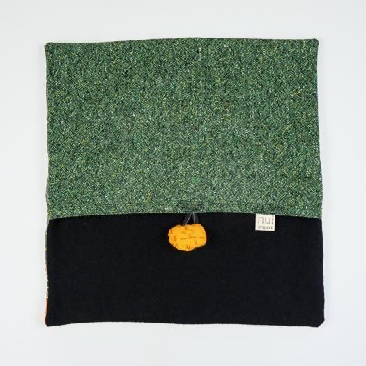 布の工房のメンバーによる刺繍ピースを使用し、布の工房でクッションカバーに仕立てました。