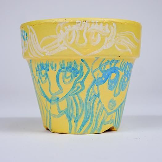 工房しょうぶで活動を行うメンバーが手描きした鉢です。